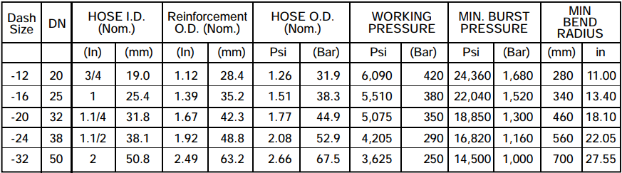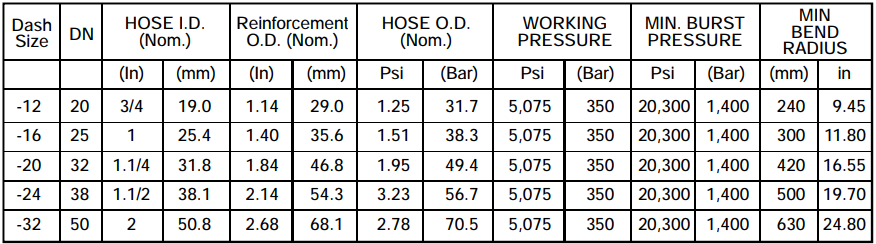 Very low pressure and low impulse hydraulic lines 20 to 35 bar for use with petroleum, synthetic orwater based fluids in Hydraulic systems. Suitable for Agricultural, Stationary equipments and hydraulic systems.